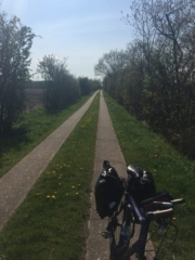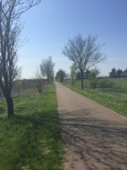 Wir verabschieden uns von unserer netten Wirtin, packen unsere Sachen und schwingen uns auf unsere Räder – vor uns liegt die längste Etappe, geplant sind 3 Abschnitte, 35 km und knapp 7 Stunden Fahrt. Zunächst erledigen wir aber noch die Reste von Abschnitt 2, die wir gestern wegen des Abendessens ausgelassen haben. Wie gestern auch führt der Trail auf Nebenstraßen, Wirtschaftswegen und Spazierpfaden durch die wunderschöne Natur Nordfrieslands; über lange Abschnitte treffen wir nur Kühe, Pferde und Windmühlen. Somit ist diese Tour auch wunderbar für Familien mit Kindern geeignet (Kondition vorausgesetzt), zumal es keine nennenswerten Steigungen gibt.