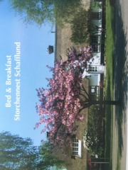 Wir werden vom Hofhund und von der Besitzerin herzlich begrüßt und bekommen ein Zimmer unterm Dach. Der Hof lädt mit Sitzgelegenheiten im Grünen zum Verweilen ein, der Kühlschrank im Flur ist mit Erfrischungsgetränken und „Flens“ zum zivilen Preisen gefüllt, und nebenan steht ein alter Schornstein der ehemaligen Gärtnerei, auf dem seit 1962 jedes Jahr Störche brüten. Auch in diesem Jahr ist das Nest wieder belegt, und das Klappern der Schnäbel begleitet uns. Ein Blick auf das Garmin zeigt die Tagesleistung: 41km Strecke, 3 Stunden in Fahrt, 4,5 Stunden Pause – kein Wunder bei 88 gefundenen Caches. Wir gönnen uns ein leckeres Abendessen im Restaurant Utspann, wo der ZdM-Trail im Jahr 2011 seinen Anfang nahm, und fallen dann ins Bett.